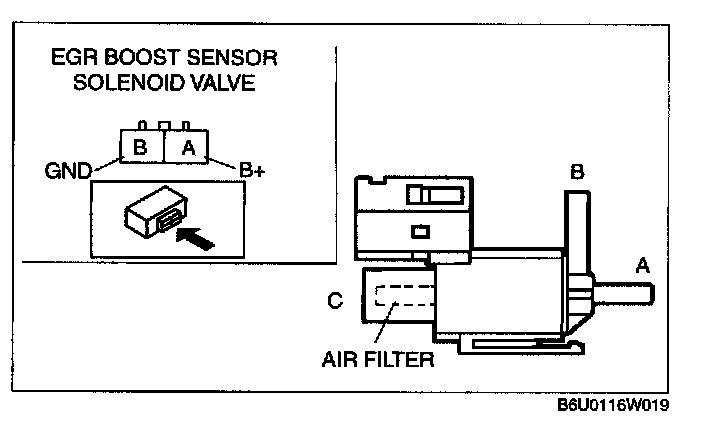 - If not as specified, replace the EGR boost sensor solenoid valve.