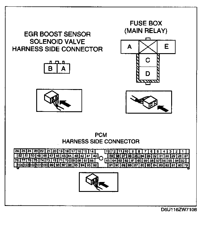 - EGR boost sensor solenoid valve terminal A and main relay terminal C