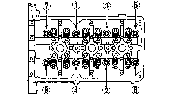 Tighten the bearing caps evenly in the order shown in several passes