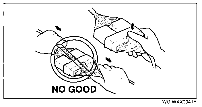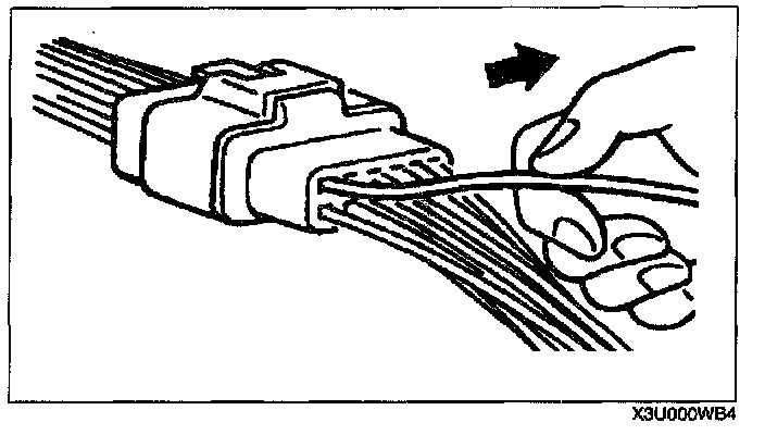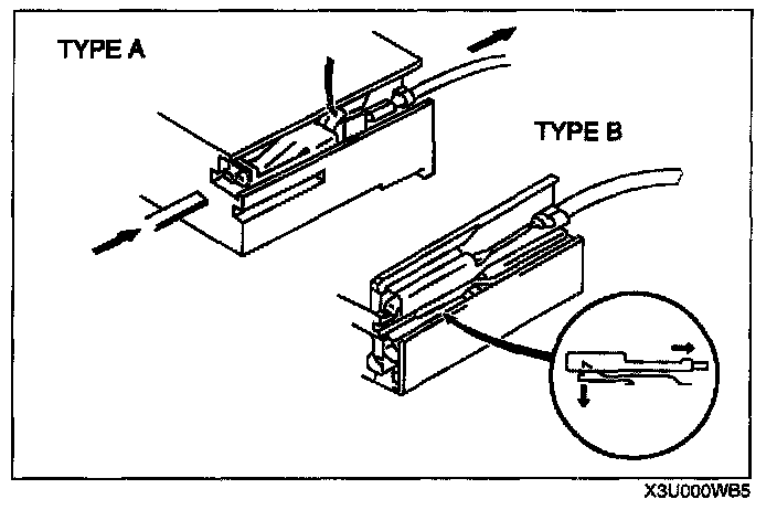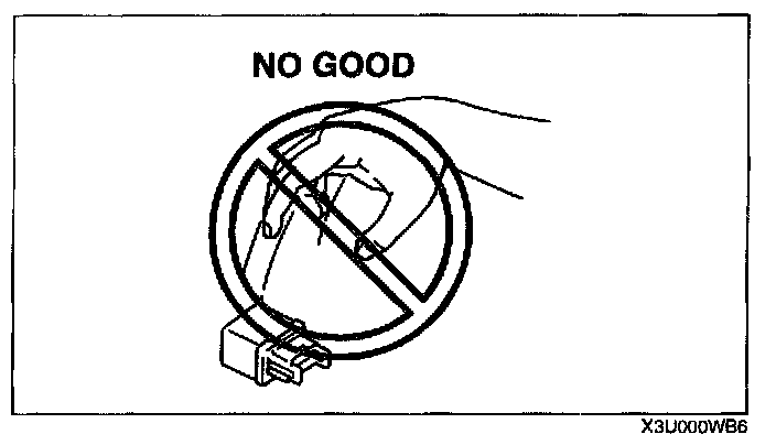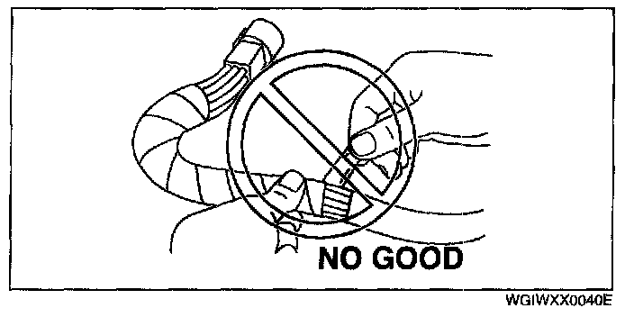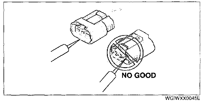 - When a tester is used to inspect for continuity or measuring voltage, insert the tester probe from the wiring harness side.