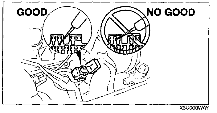CAUTION: To prevent damage to the terminal, wrap a thin wire around the tester probe before inserting into terminal.