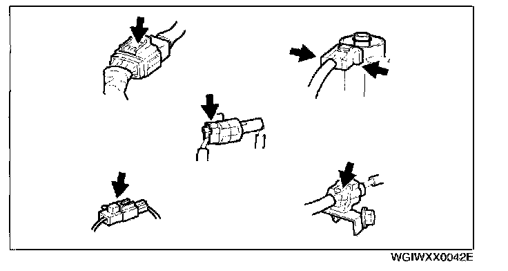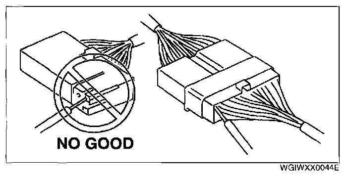 - Inspect the terminals of waterproof connectors from the connector side since they cannot be accessed from the wiring harness side.