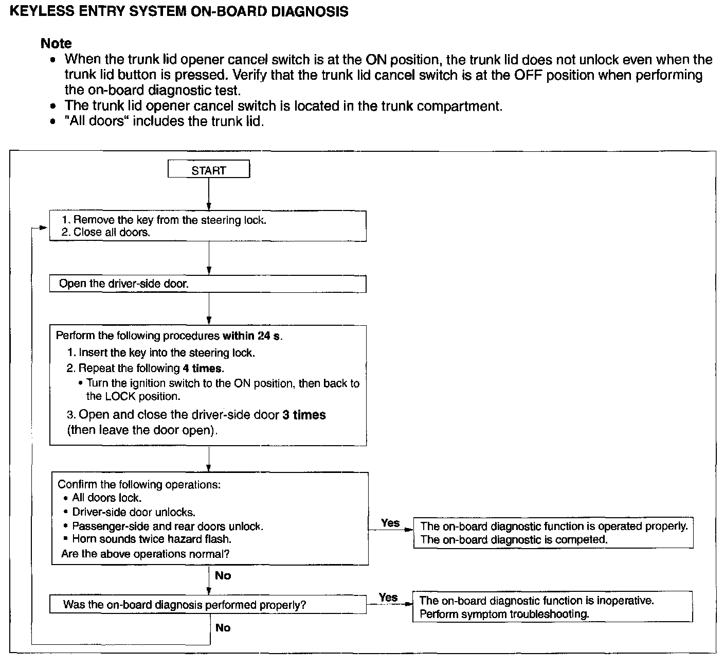 Keyless Entry System On-Board Diagnosis: