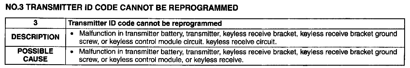 No. 3 Transmitter ID Code Cannot Be Reprogrammed