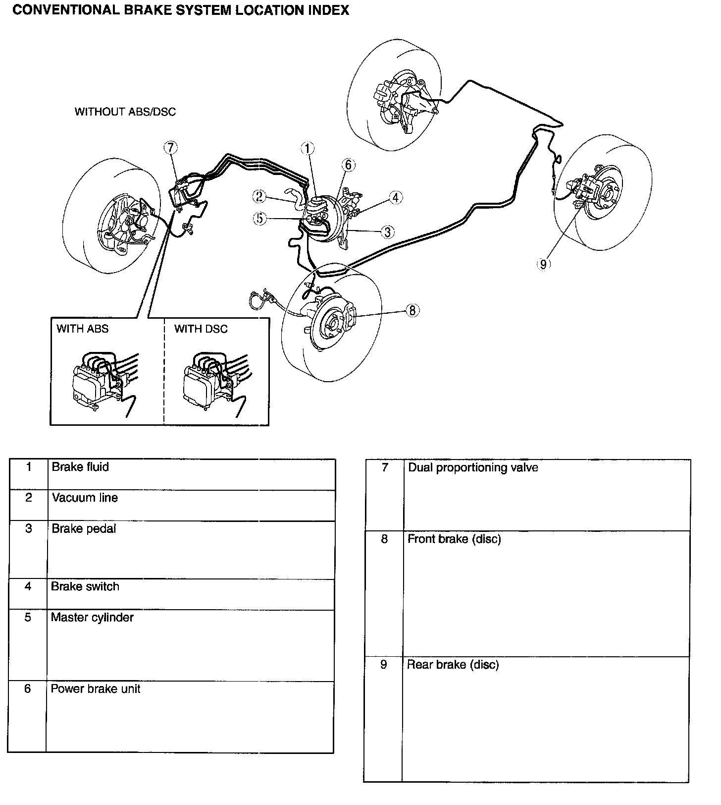 CONVENTIONAL BRAKE SYSTEM LOCATION INDEX: