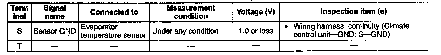 - If the parts under "Inspection item (s)" are found to be normal, replace the climate control unit.