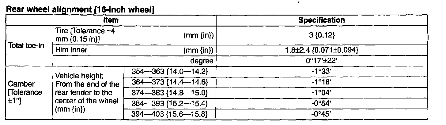 REAR WHEEL ALIGNMENTRear wheel alignment [16-inch wheel]: