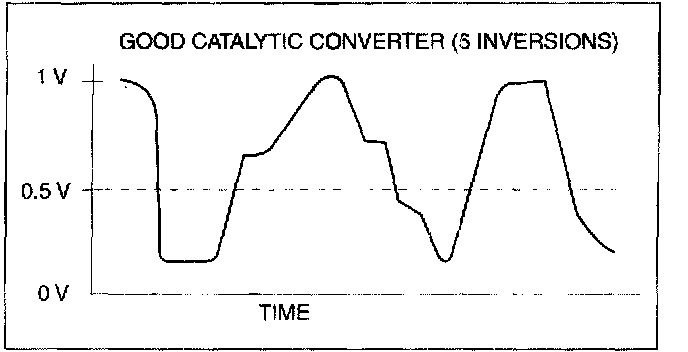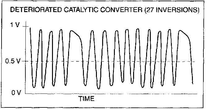8. Count the number of times (inversions) that the upstream HO2S graph line actually crosses the 0.5 V line.