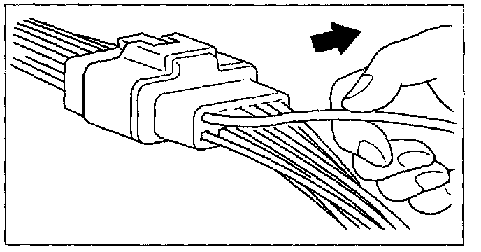 - Insert a thin piece of metal from the terminal side of the connector and with the terminal locking tab pressed down, pull the terminal out from the connector.