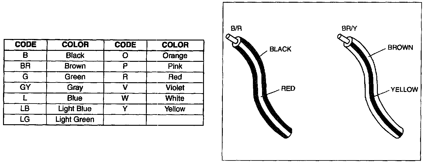 - Two-color wires are indicated by a two-color code symbol.