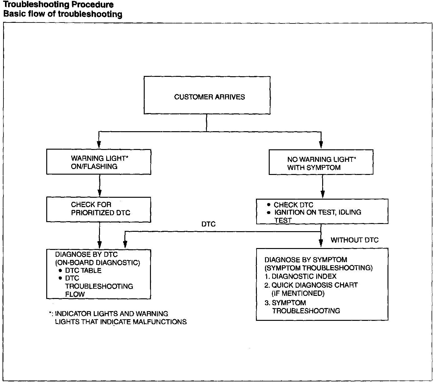 - The quick diagnosis chart lists diagnosis and inspection procedures to be performed specifically relating to the cause of the malfunction.
