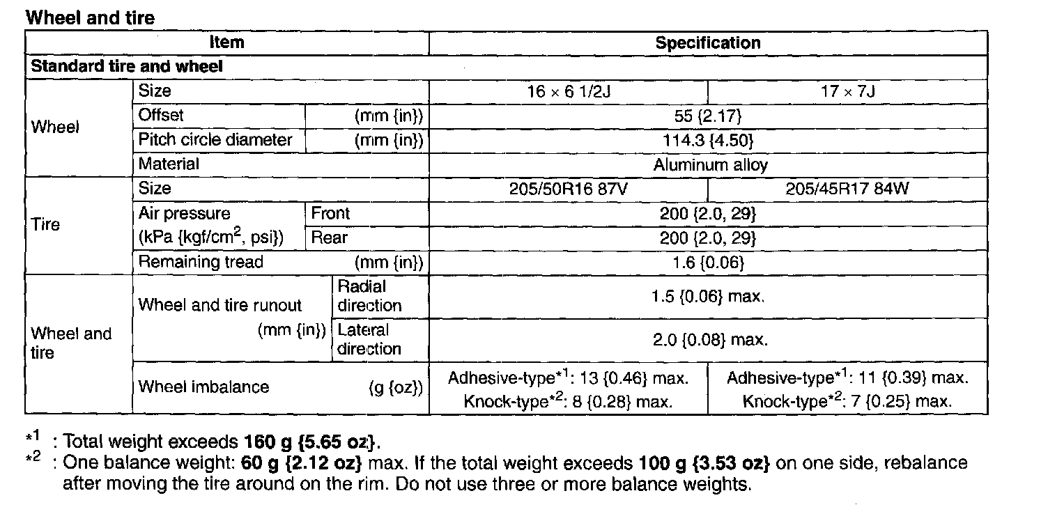 WHEEL AND TIRE SPECIFICATIONWheel and tire: