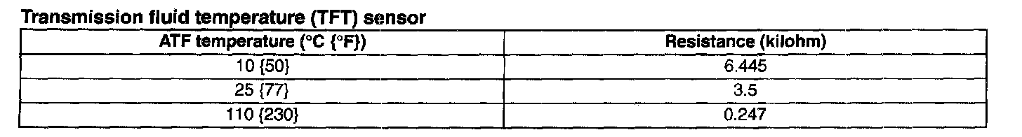 Transmission fluid temperature (TFT) sensor: