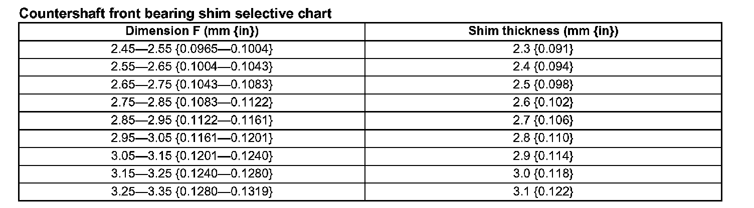 Countershaft front bearing shim selective chart