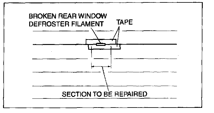 2. Attach tape to both sides of the rear window defroster filament.