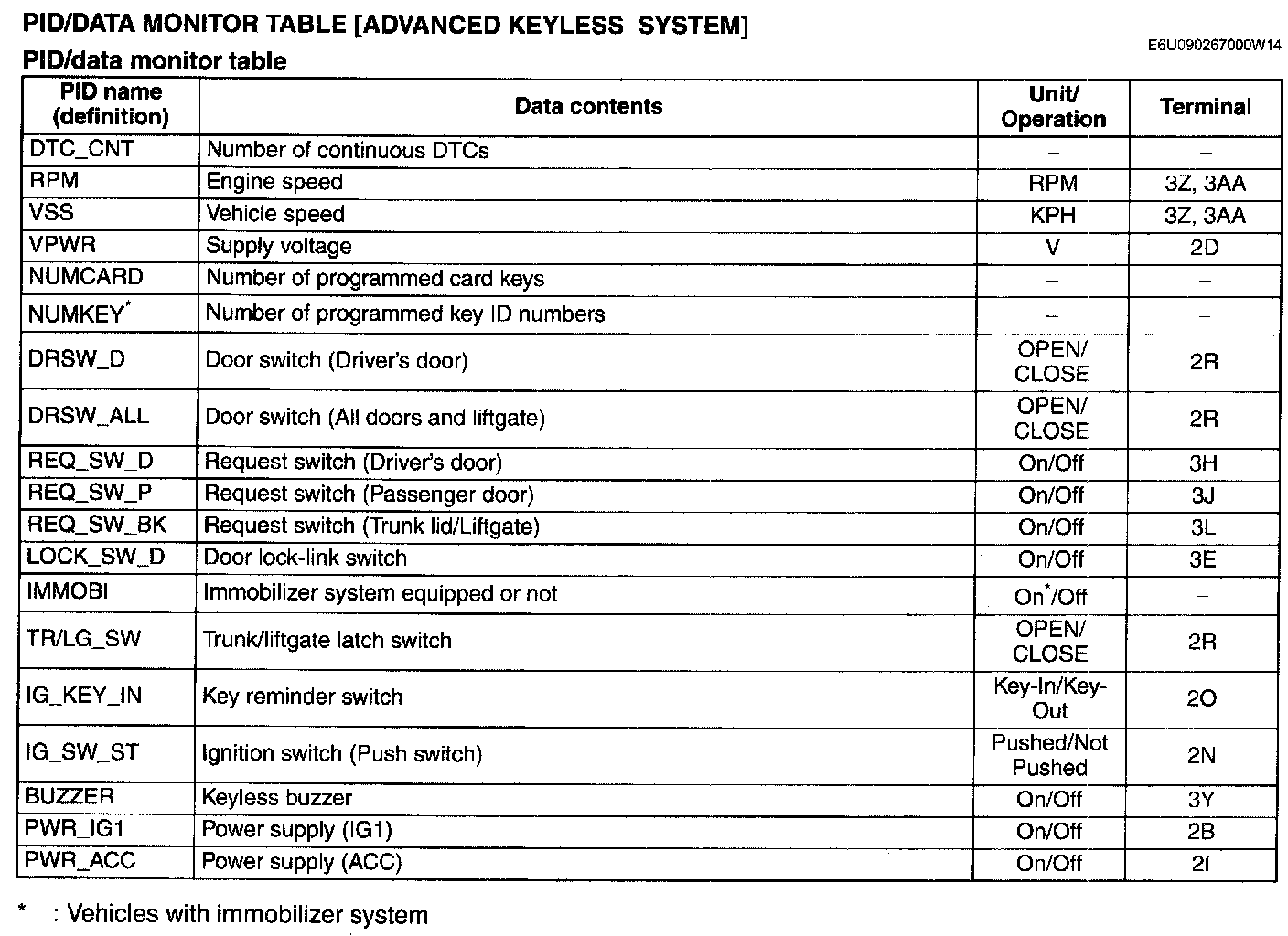 PID/Data Monitor Table