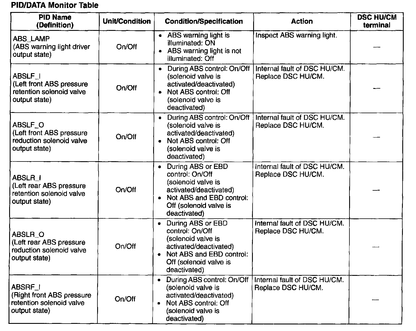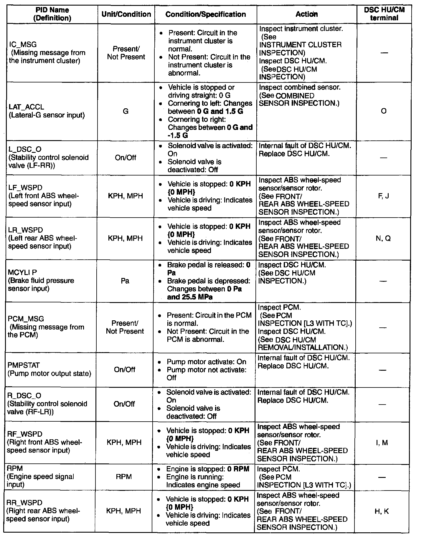 PID/DATA Monitor Table (part 1):