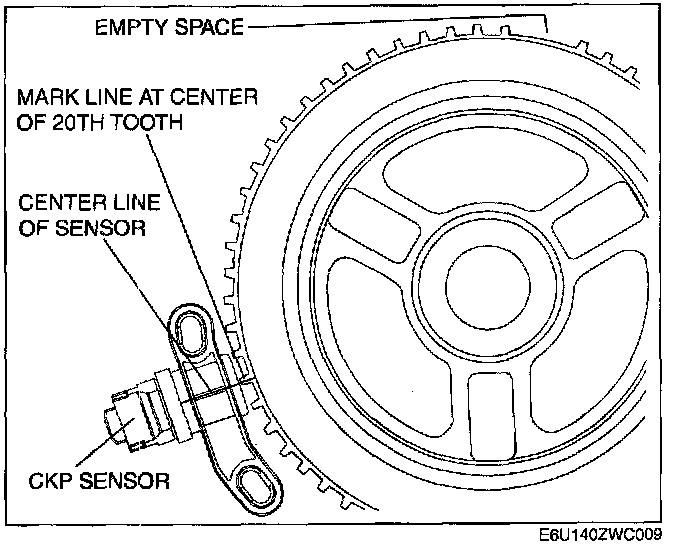 3. Align the center line of the crankshaft position sensor and the line drawn in Step 2, then install the sensor.