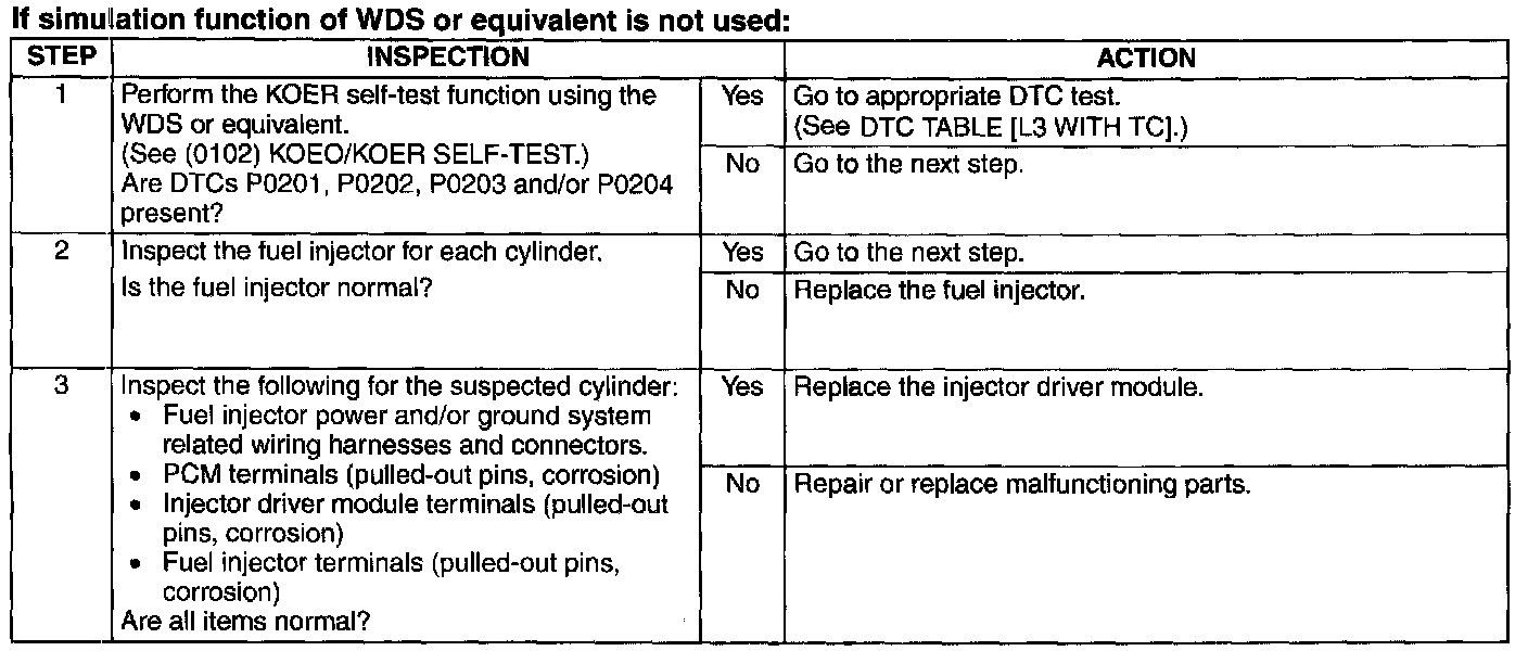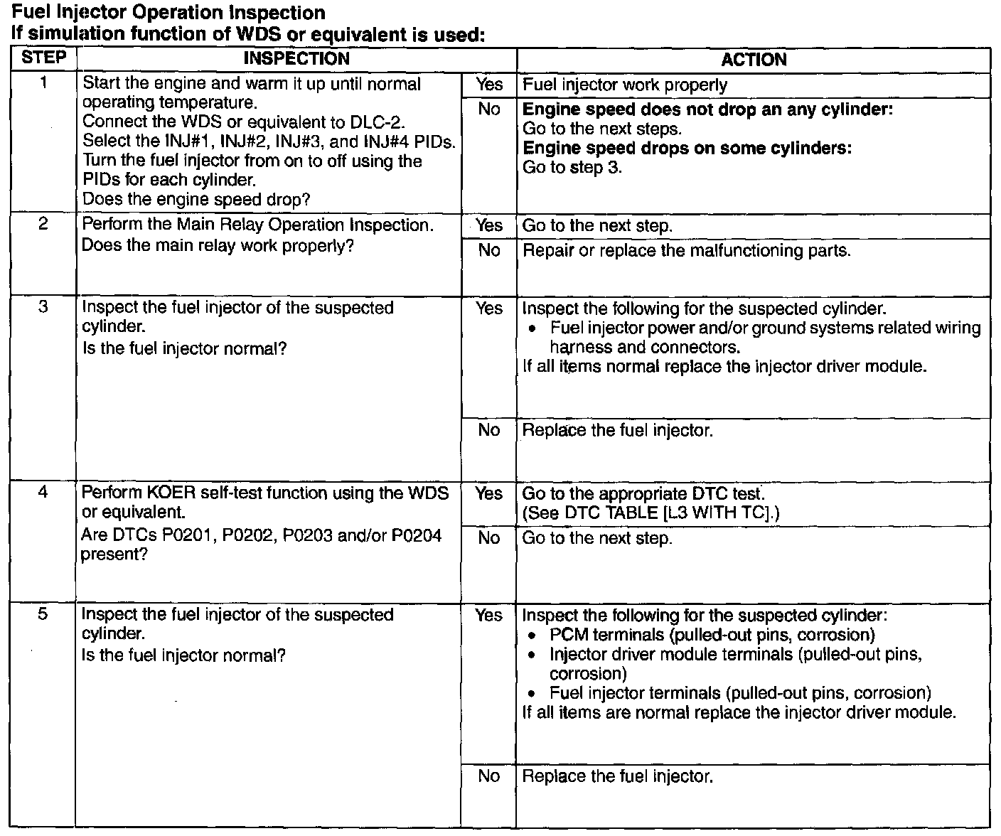 NOTE: This inspection has to be performed after the Fuel Injector Operation Inspection.