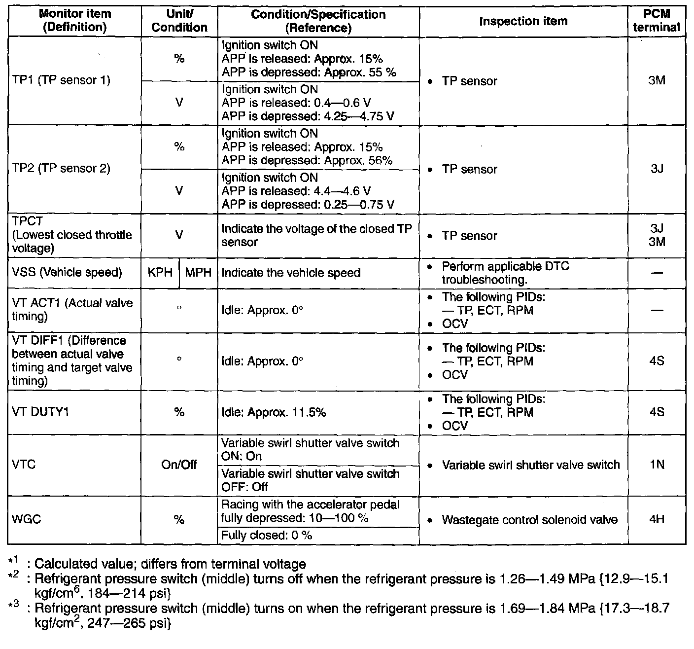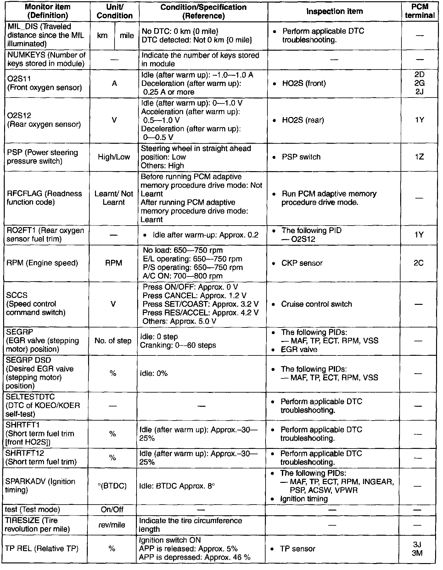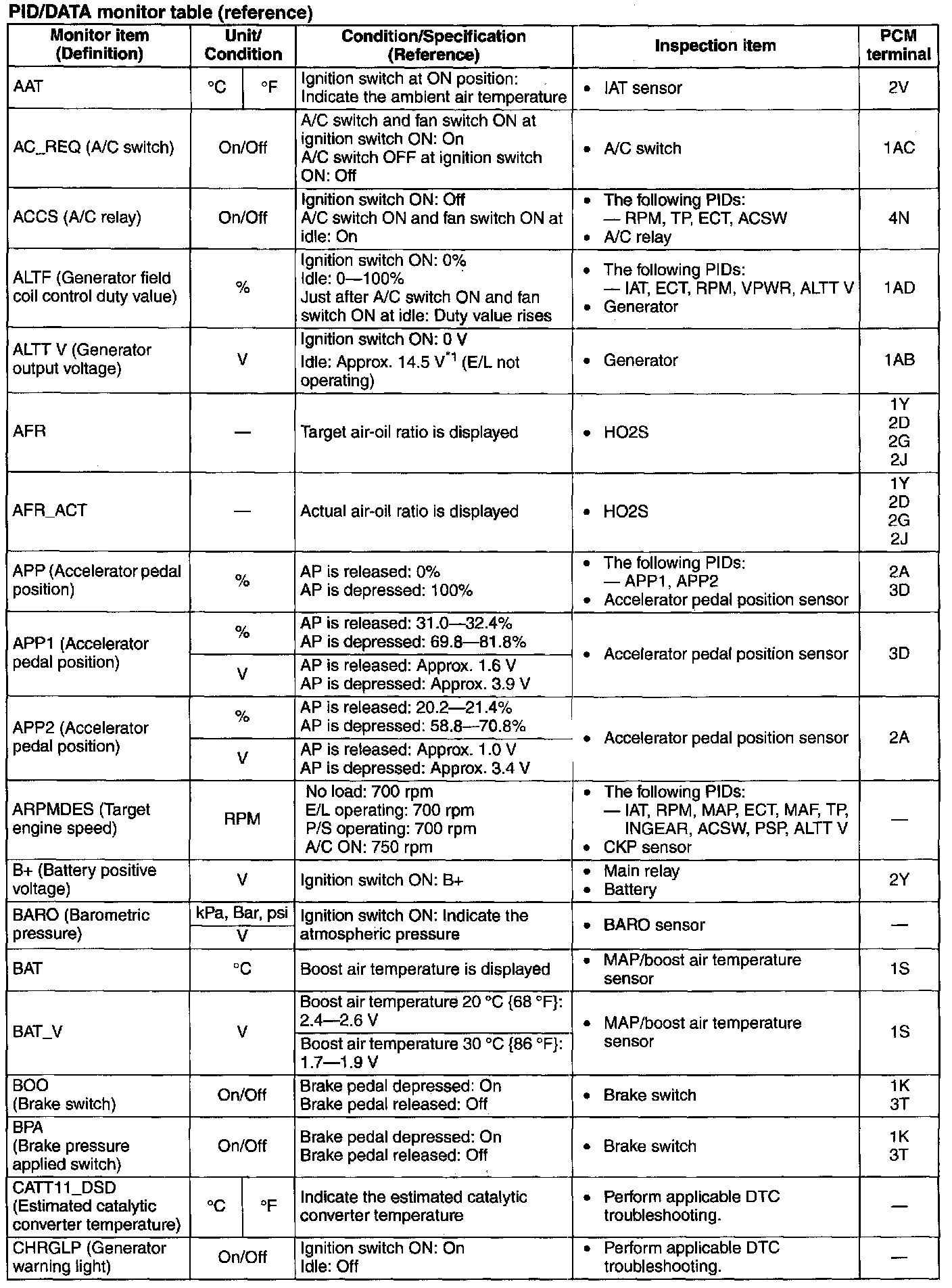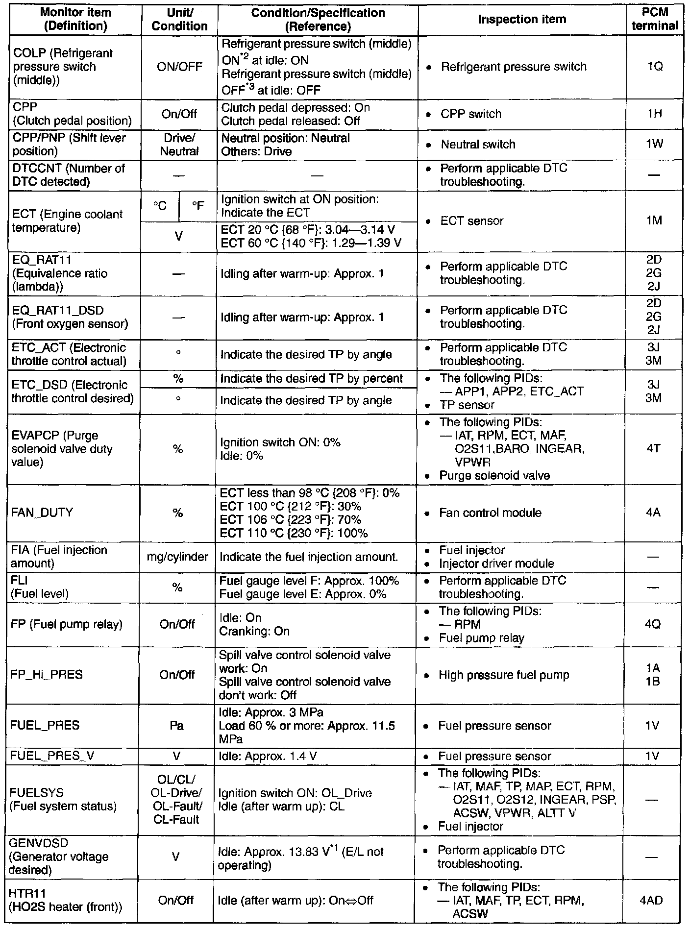 PID/Data Monitor Table(reference) (Part 1):