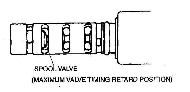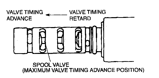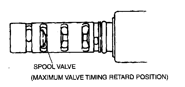 2. Verify that the spool valve inside the OCV is at the maximum valve timing retard position as shown in the figure.