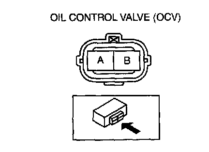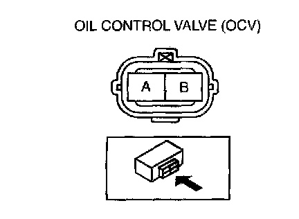 - When applying battery positive voltage between the oil control valve terminals, the connection of the positive and negative cables can be either terminal A or B.