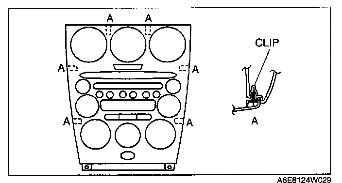 1. Pull the center panel module toward you, then disengage clips A from the dashboard, and remove the center panel module.