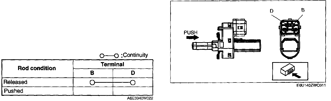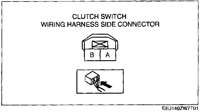 4. Inspect for continuity between the clutch switch terminals using a tester.