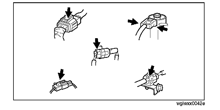 ^ Inspect the terminals of waterproof connectors from the connector side since they cannot be accessed from the wiring harness side.