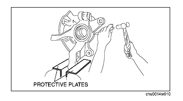 When using a vise, put protective plates in the jaws of the vise to prevent damage to parts.