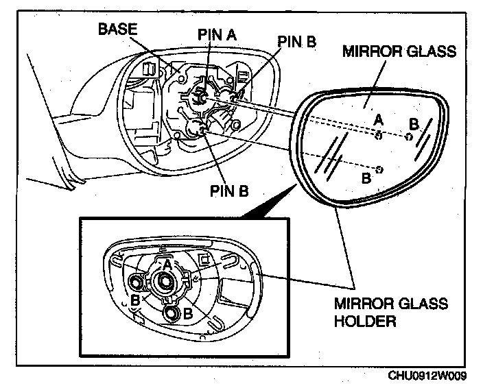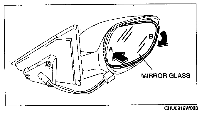 2. Detach pin A while lifting up the inside of the mirror glass holder.