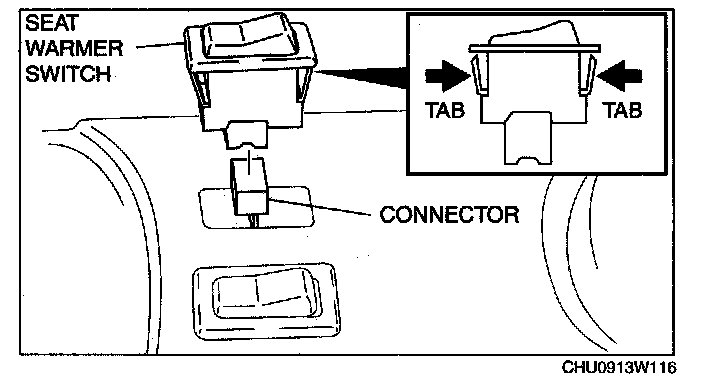4. Squeeze the tabs of seat warmer switch and pull it outward to remove it.