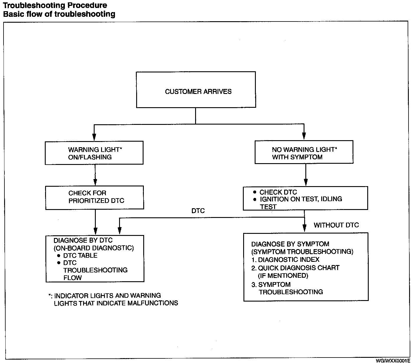 - The symptoms of the malfunctions are listed in the diagnostic index for symptom troubleshooting.