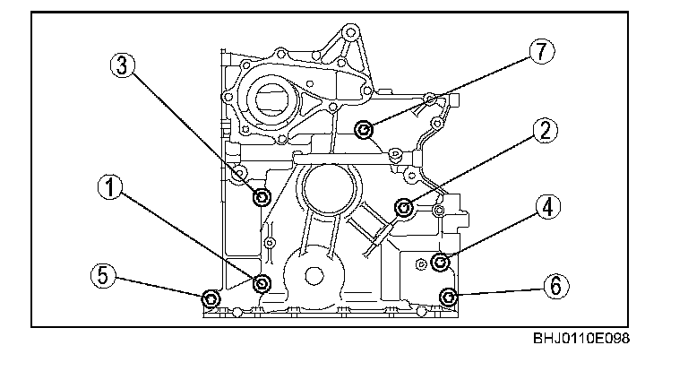 2. Tighten the engine front cover installation bolts in the order shown in the figure.