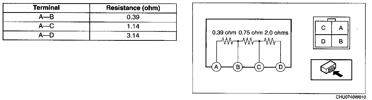 Verify that the resistance between the resistor terminals is as indicated in the table.