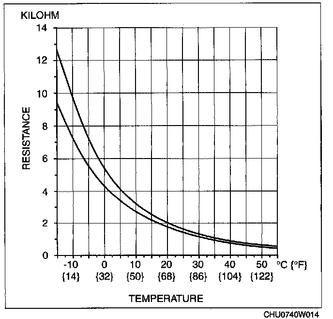 - If the characteristics of the evaporator temperature sensor are not as shown in the graph, replace the evaporator temperature sensor.