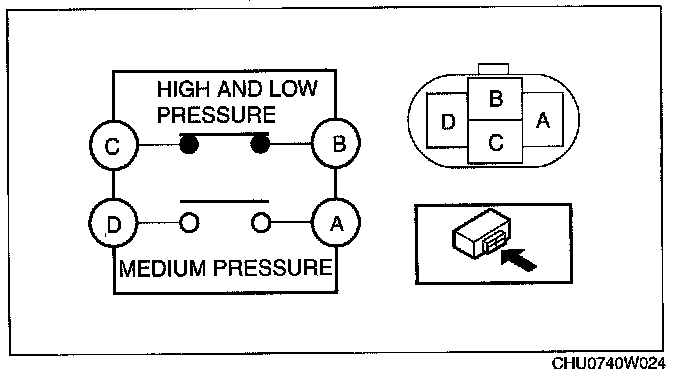 - If the continuity is not normal, replace the refrigerant pressure switch.