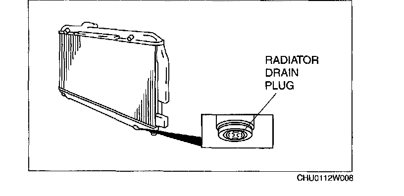 2. Loosen the radiator drain plug and drain the engine coolant.