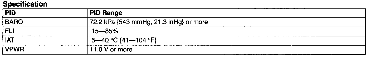 - To successfully perform this procedure, all PIDs must be within the following specifications before proceeding to the next step.