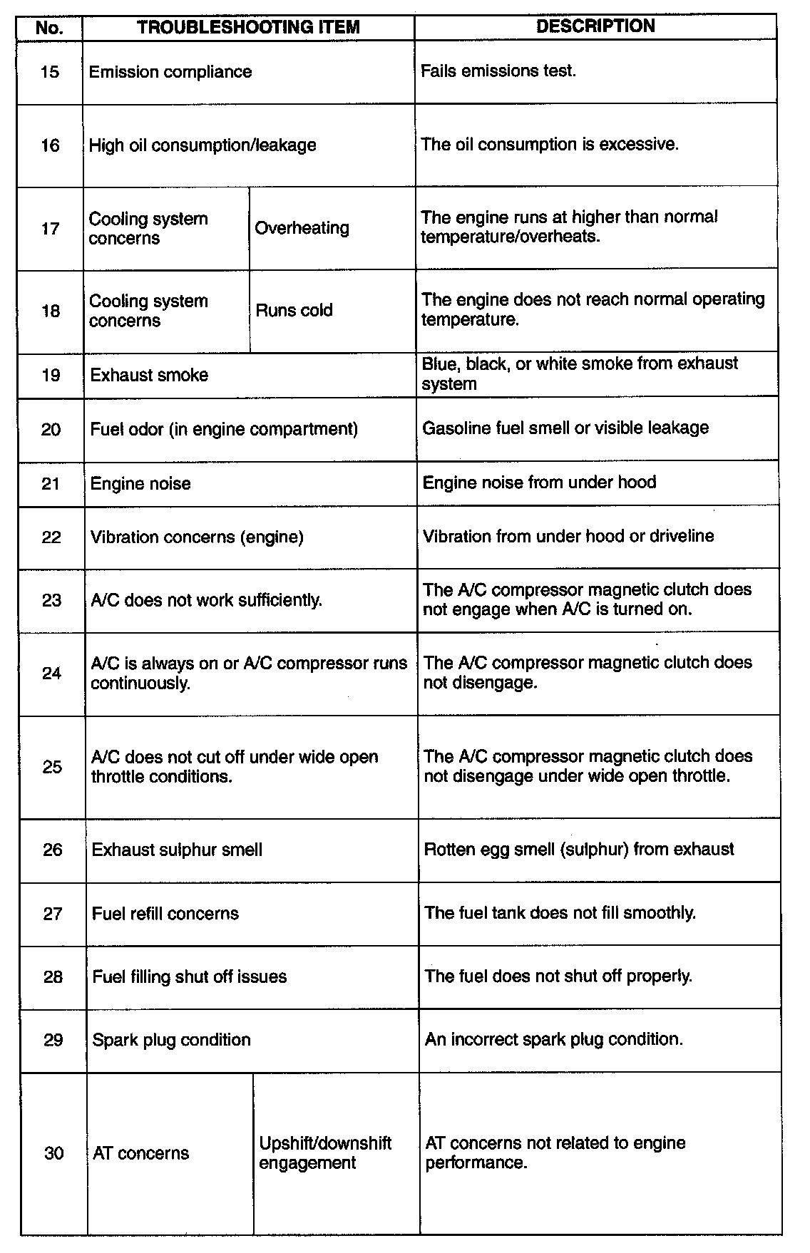 Symptom Troubleshooting Chart - Engine Driveability