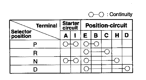 1. Verify that the starter operates only when the ignition switch is turned to the START position with the selector lever in the P or N position.