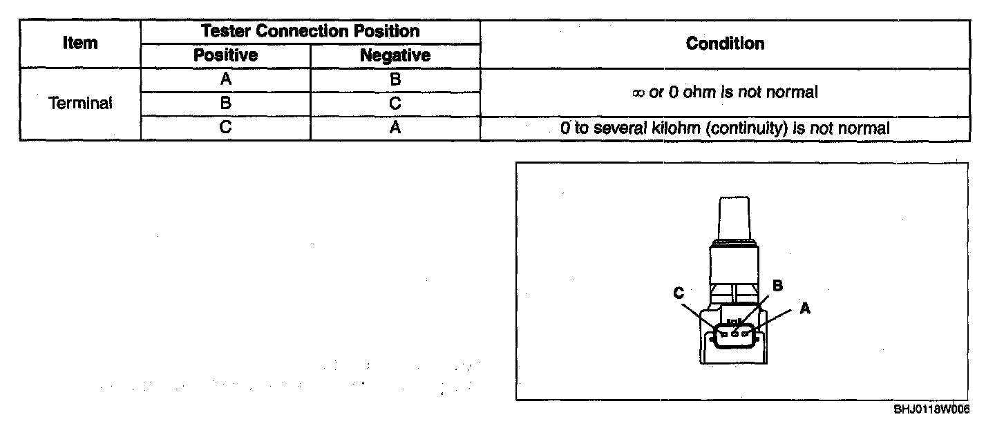 2. Measure the resistance between each terminal on the ignition coil connector.