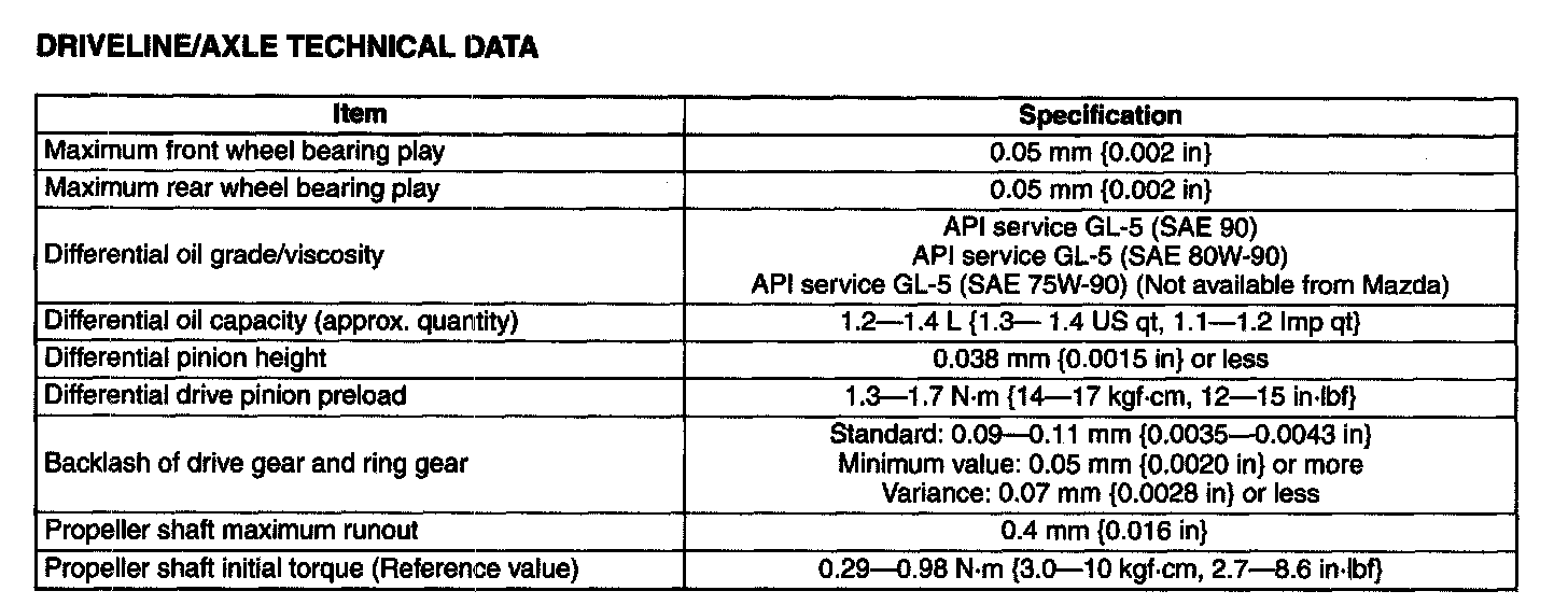 DRIVELINE/AXLE TECHNICAL DATA
