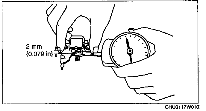 2. Read the spring pressure gauge at the brush tip projection of 2 mm (0.079 in).