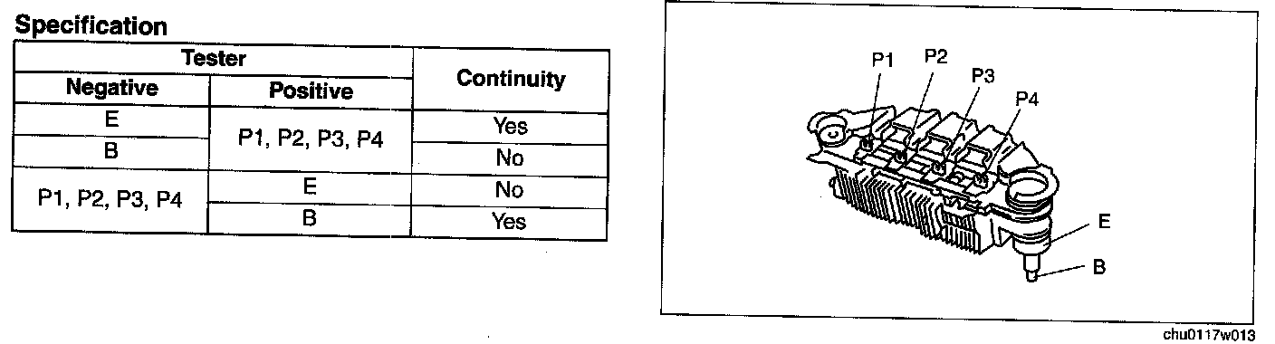 1. Inspect for continuity of the diodes using a tester.