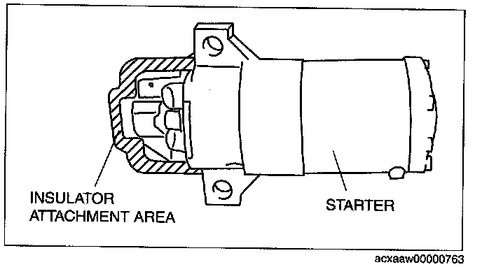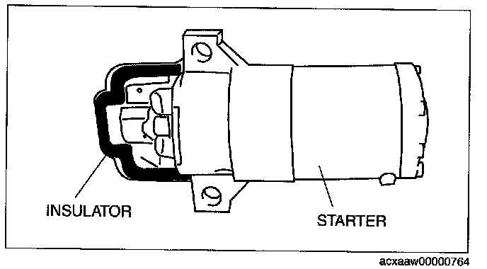 - When the battery cables are connected, touching the vehicle body with starter terminal B will generate sparks. This can cause personal injury, fire, and damage to the electrical components. Always disconnect the negative battery cable before performing the following operation.