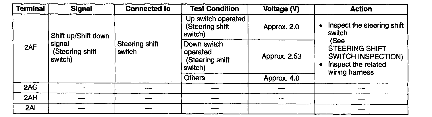 TCM INSPECTION [SJ6A-EL]Terminal Voltage Table (Reference)
