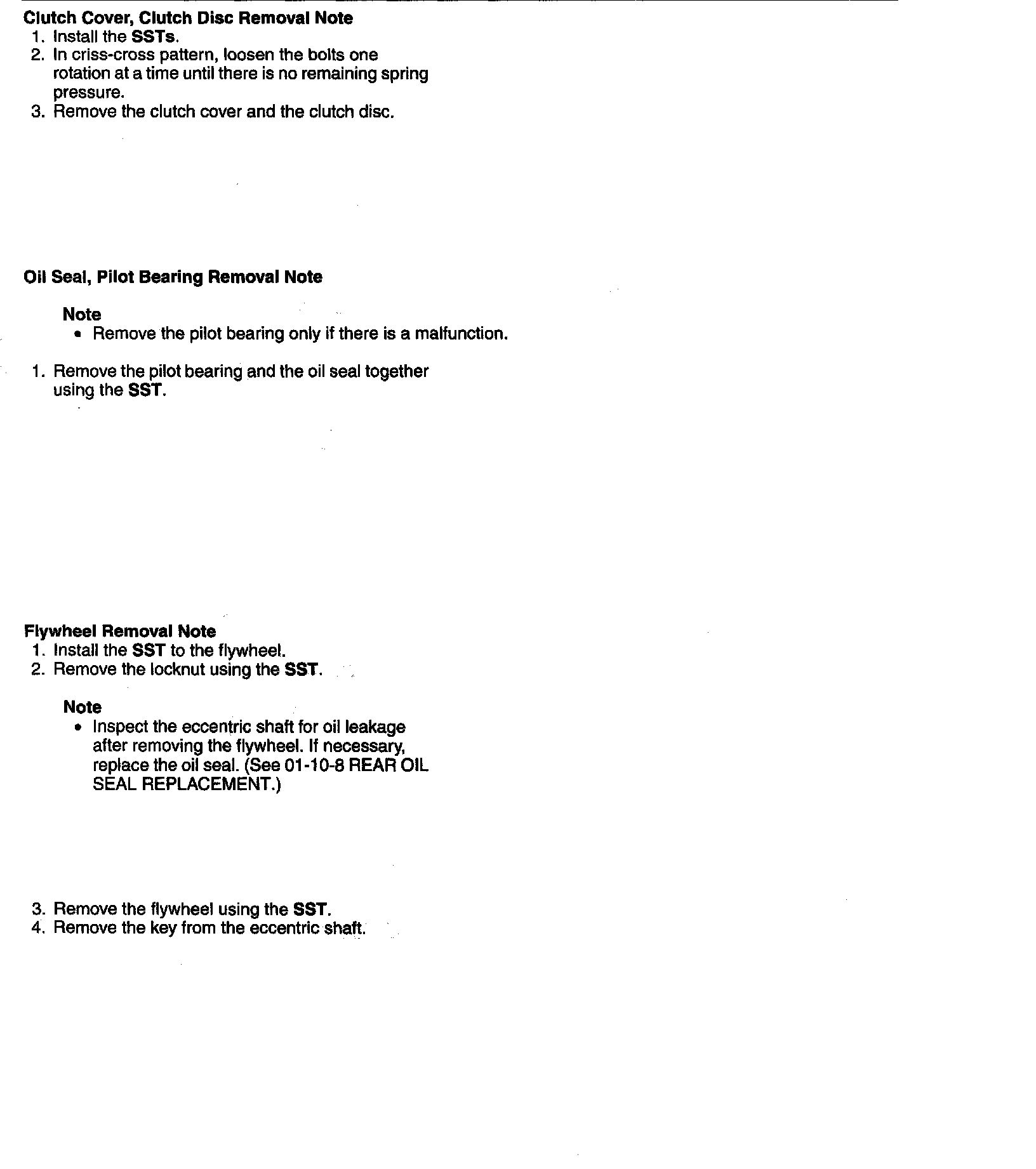 Oil Seal, Pilot Bearing Removal Note