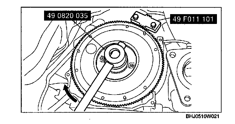 3. Remove the flywheel using the SST.