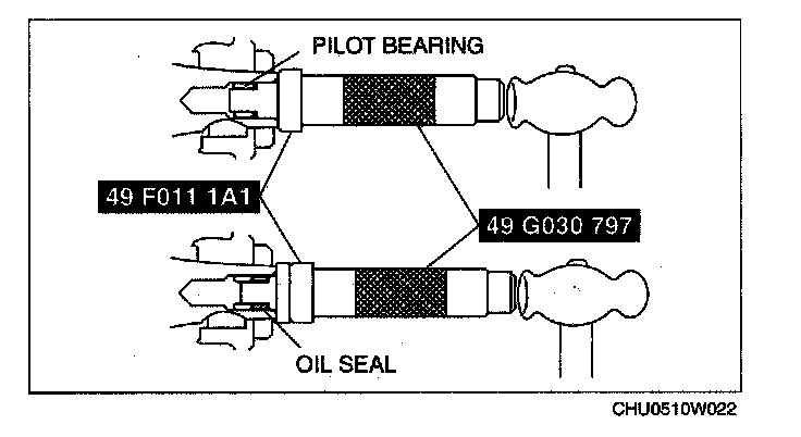 1. Remove the pilot bearing and the oil seal together using the SST.